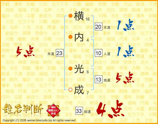 横内光成さんの総運は33画の4点!