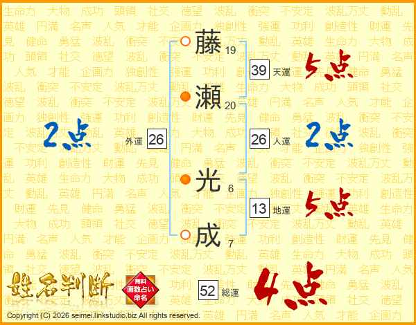 藤瀬光成さんの天運は39画の5点!