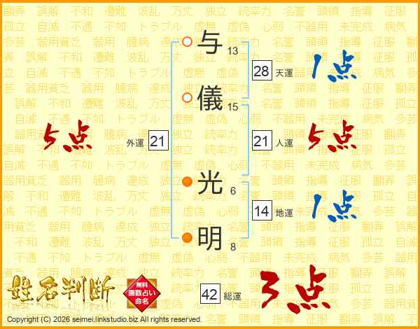 与儀光明さんの人運は21画の5点!