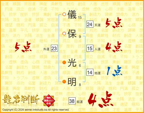 儀保光明さんの総運は38画の4点!