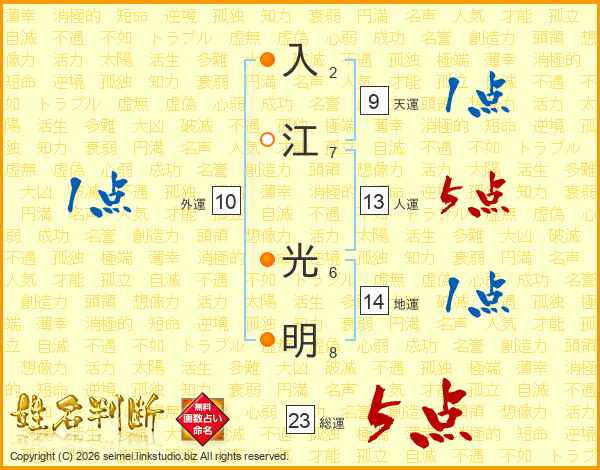 入江光明さんの総運は23画の5点!