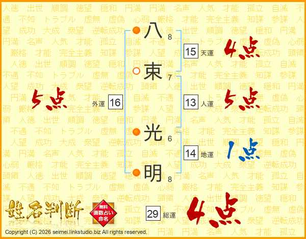 八束光明さんの総運は29画の4点!