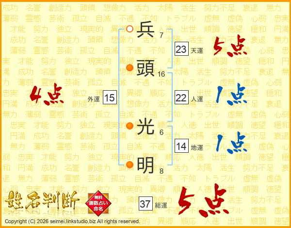 家系が持つ宿命的な運勢を表します。祖先から受け継いだ苗字ですので自分の力が及びません。家柄を象徴します。苗字の合計画数。