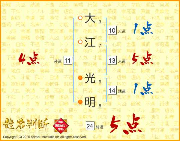 大江光明さんの総運は24画の5点!