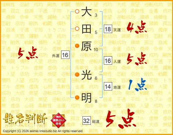 大田原光明さんの総運は32画の5点!