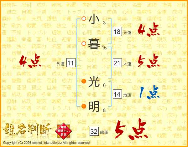 小暮光明さんの総運は32画の5点!