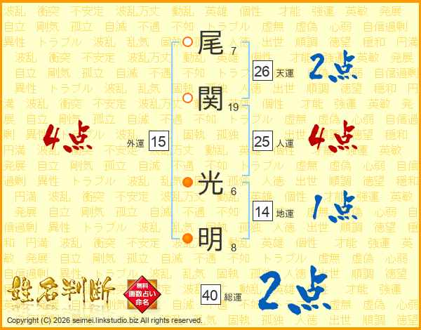 尾関光明さんの天運は26画の2点!