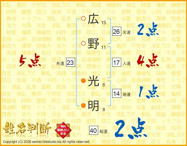 広野光明さんの天運は26画の2点!