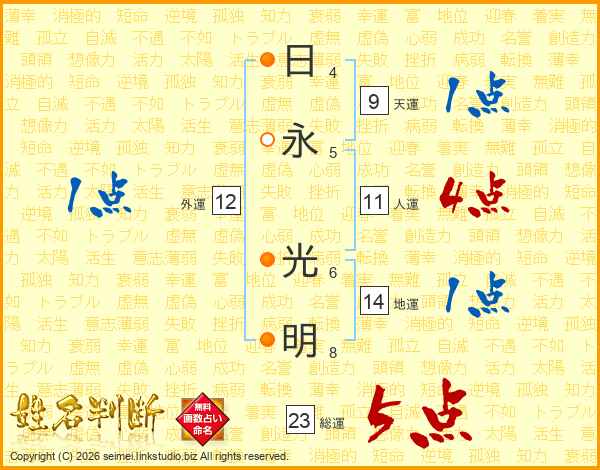 日(4画)永(5画) 光(6画)明(8画)