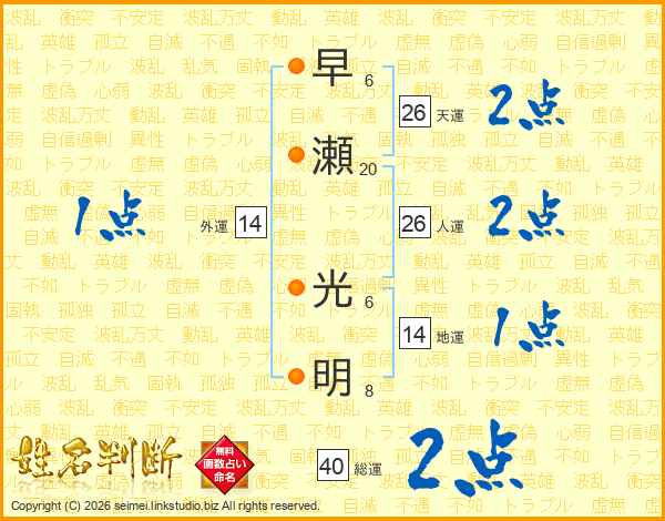 早瀬光明さんの天運は26画の2点!