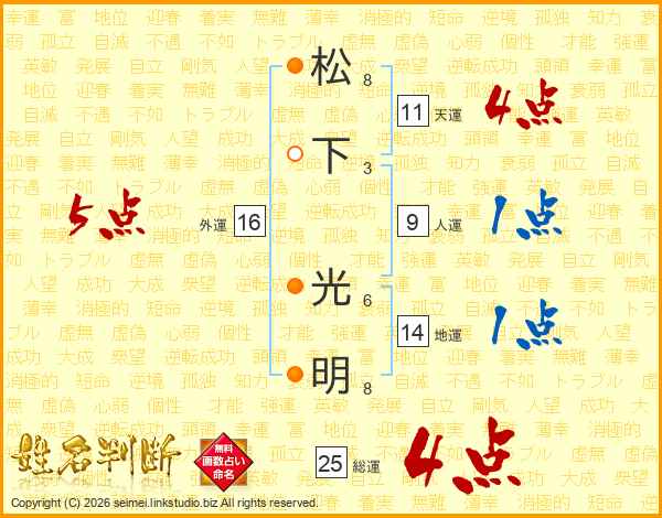 松下光明さんの総運は25画の4点!