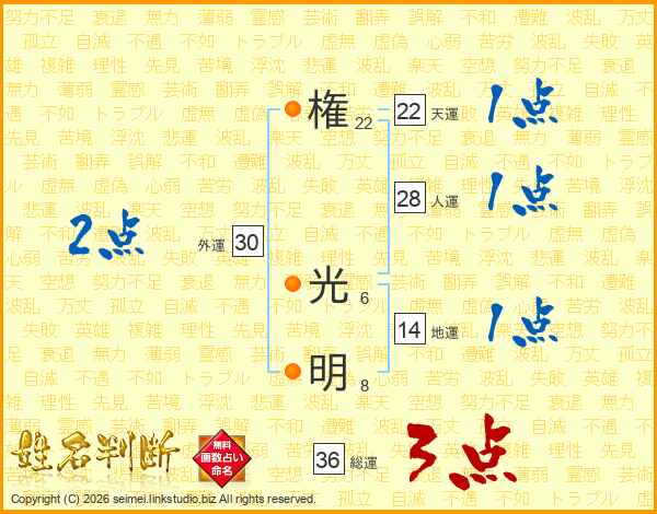 権光明さんの総運は36画の3点!