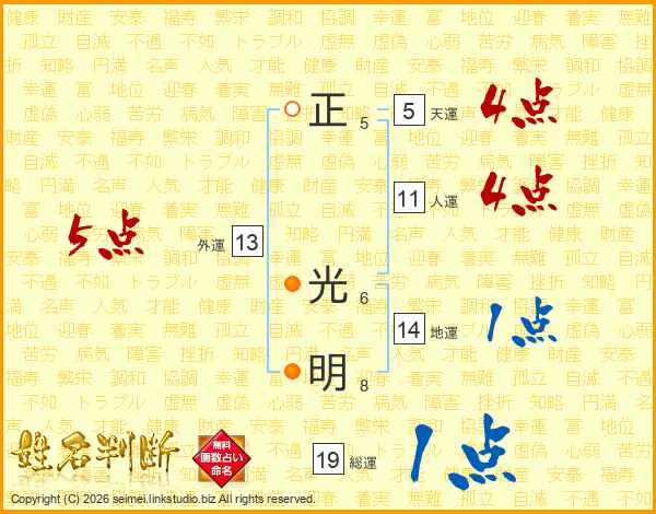 正(5画) 光(6画)明(8画)