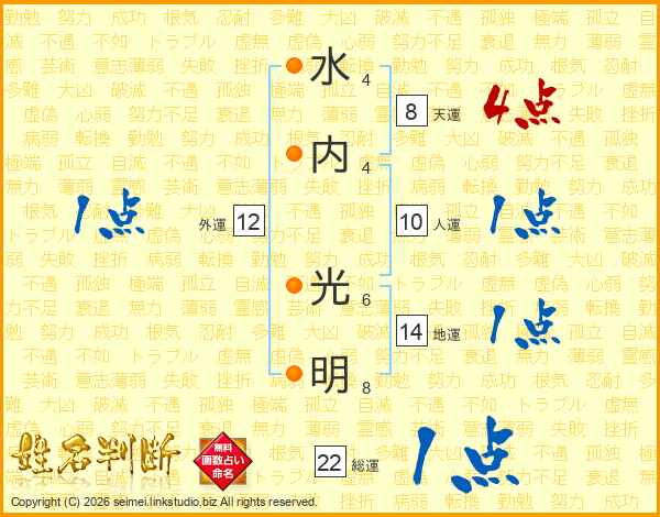 水内光明さんの総運は22画の1点!