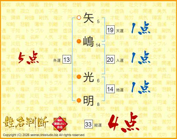 矢嶋光明さんの総運は33画の4点!