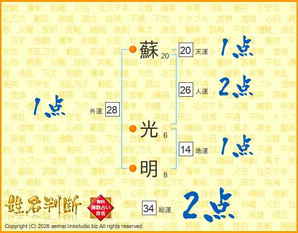 蘇(20画) 光(6画)明(8画)