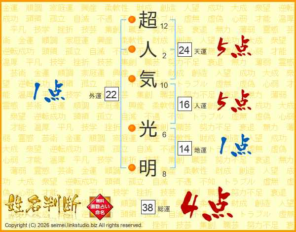超人気光明さんの総運は38画の4点!