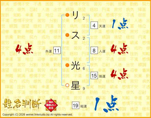 リス光星さんの総運は19画の1点!