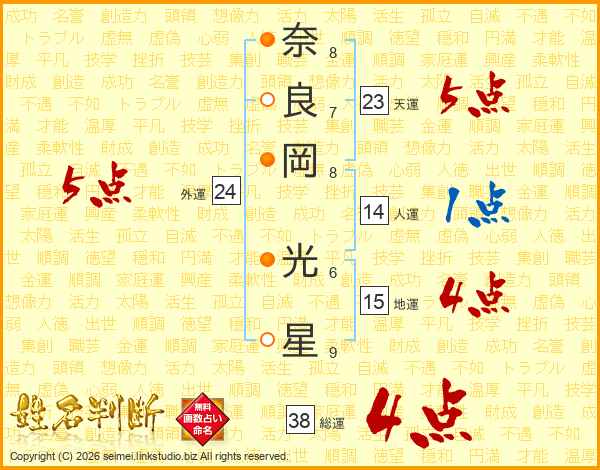 奈(8画)良(7画)岡(8画) 光(6画)星(9画)
