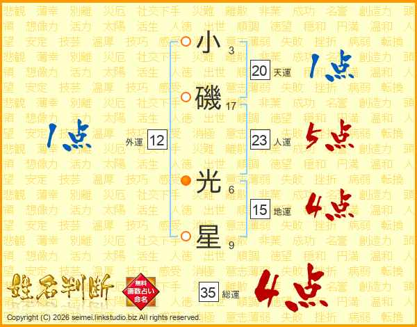 小磯光星さんの総運は35画の4点!