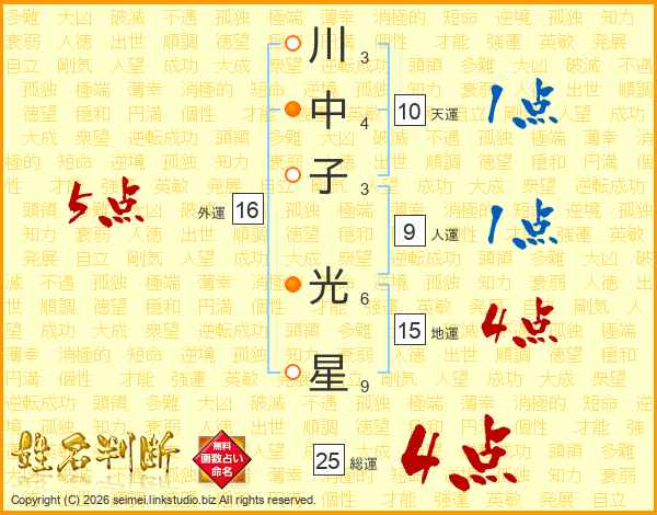 川中子光星さんの総運は25画の4点!