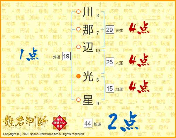 川(3画)那(7画)辺(19画) 光(6画)星(9画)