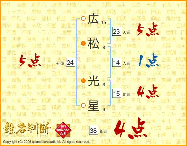広松光星さんの総運は38画の4点!
