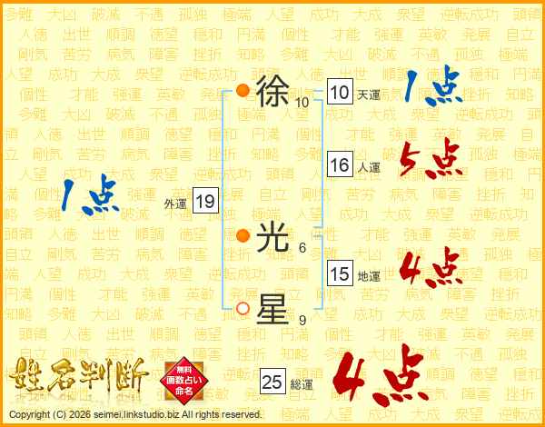 徐(10画) 光(6画)星(9画)