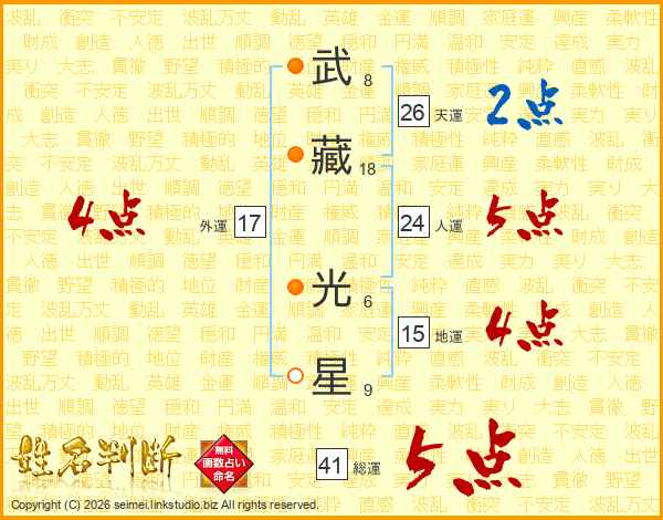 武藏光星さんの総運は41画の5点!