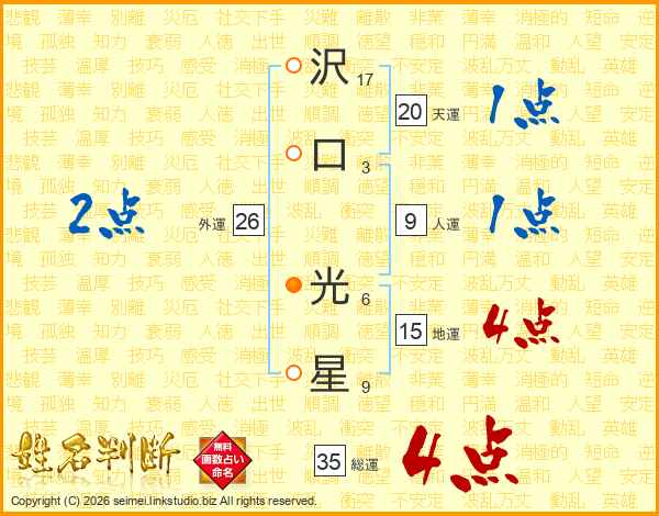 沢(17画)口(3画) 光(6画)星(9画)