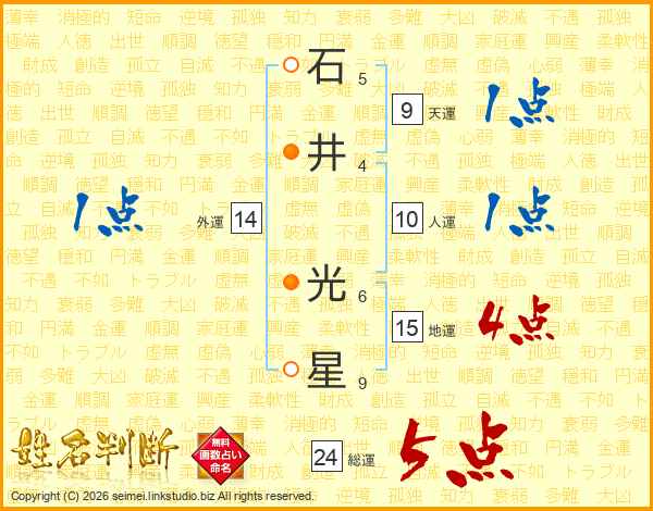 石(5画)井(4画) 光(6画)星(9画)