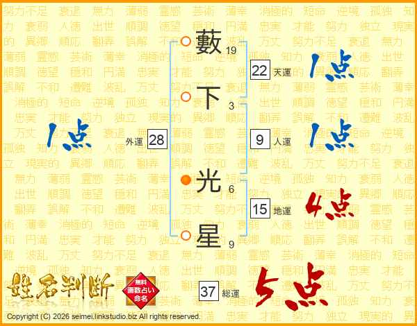 藪下光星さんの総運は37画の5点!