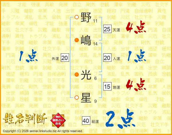 野嶋光星さんの総運は40画の2点!