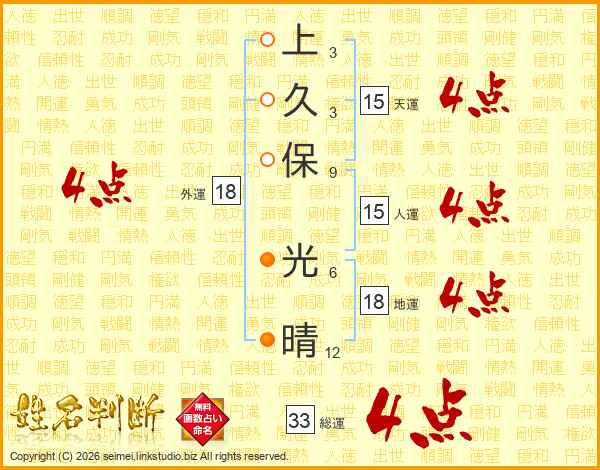 上久保光晴さんの総運は33画の4点!