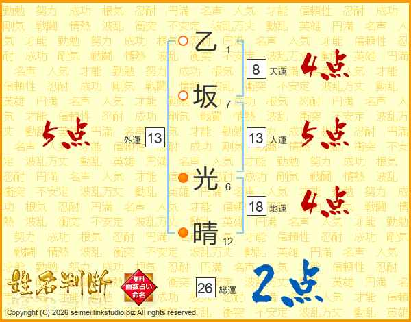 乙(1画)坂(7画) 光(6画)晴(12画)