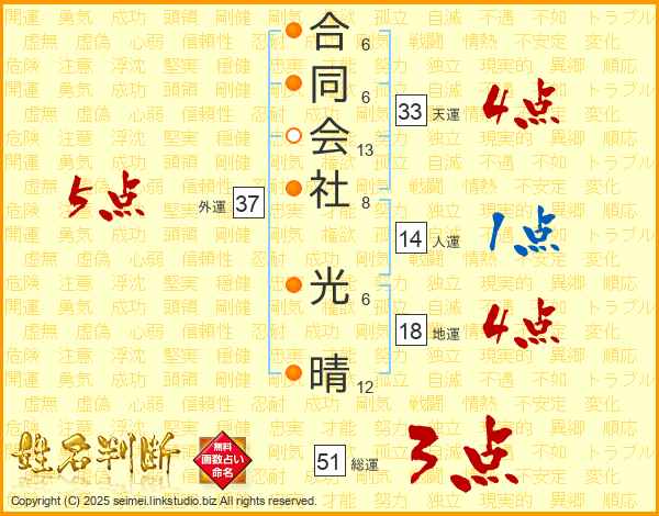 合(6画)同(6画)会(13画)社(8画) 光(6画)晴(12画)