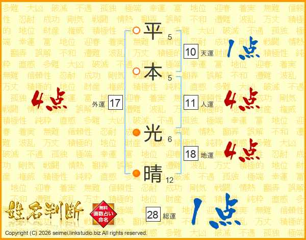 平本光晴さんの人運は11画の4点!