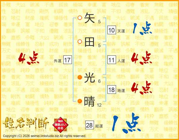 矢田光晴さんの人運は11画の4点!