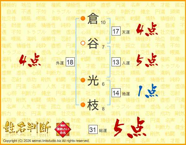 倉谷光枝さんの総運は31画の5点!