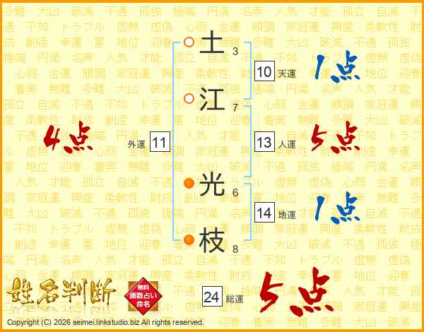 土江光枝さんの総運は24画の5点!
