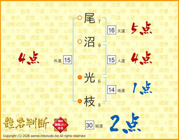 尾沼光枝さんの総運は30画の2点!