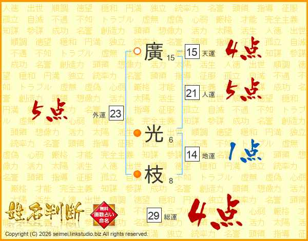 廣光枝さんの総運は29画の4点!