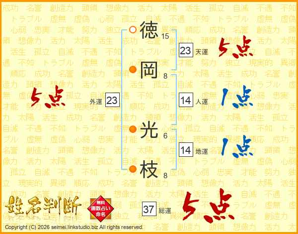 徳(15画)岡(8画) 光(6画)枝(8画)