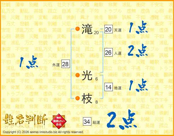 滝(20画) 光(6画)枝(8画)