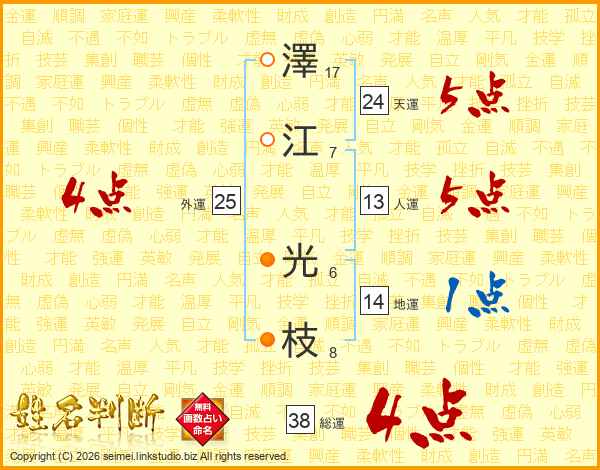 澤江光枝さんの総運は38画の4点!