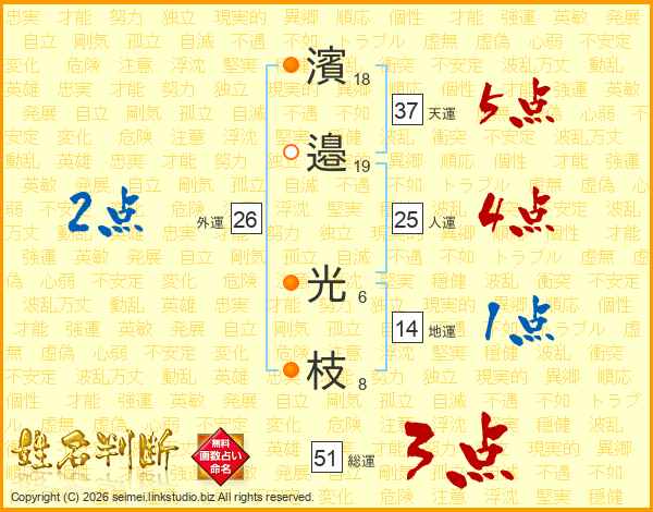 濱(18画)邉(19画) 光(6画)枝(8画)