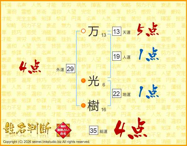 万(13画) 光(6画)樹(16画)