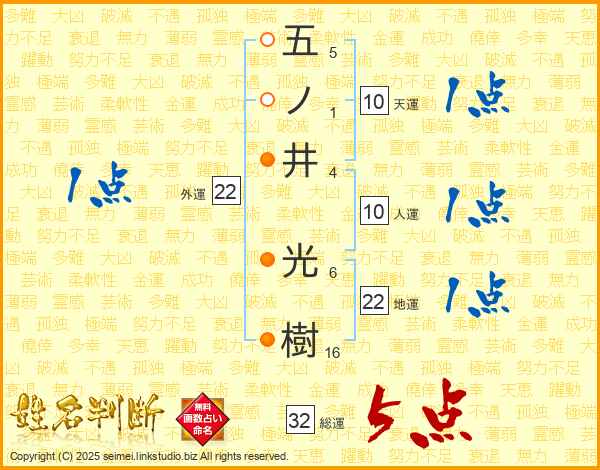 五ノ井光樹さんの総運は32画の5点!