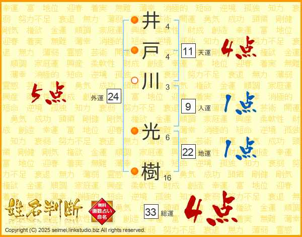 井戸川光樹さんの総運は33画の4点!