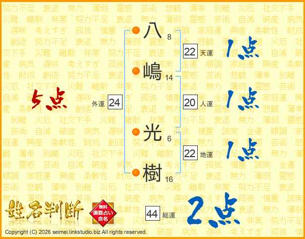 八嶋光樹さんの総運は44画の2点!